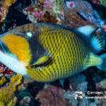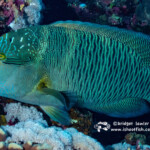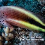 Another interesting species is the Slingjaw Wrasse (Epibulus insidiator). The mouth of this species can unfold so that the jaws swing forward into a long tube with strong suction to catch prey. I caught this terminal male adult just as he was closing the tube: