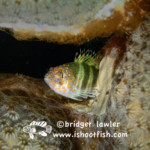 I had the awesome experience of finding a new-to-me fish. It took perhaps longer than it should have to ID this guy, because I thought he was some kind of wrasse, but he turned out to be a Lantern Bass, Serranus baldwini. He is stunningly gorgeous, only about 1″ long: