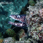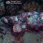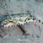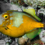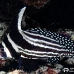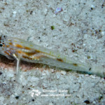 ^^ The gorgeous Slender Filefish, Monacanthus tuckeri, is most often found hanging head down like this, amongst the soft corals. This one is a juvenile, about 1″ long.