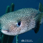 Next up is one of my favorites, and I would spend an entire dive trying to get a shot of one, if only my dive buddies would agree. This is a baby Smooth Trunkfish, Lactophrys triqueter. They bobble about like wee balloons, and turn away just when you have the perfect shot lined up. I must have a thousand butt shots of these guys. Their extreme teensiness makes shooting them a master class in patience. (Hear that, dive buddies?)