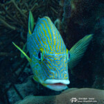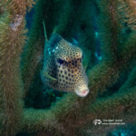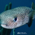 Next up is one of my favorites, and I would spend an entire dive trying to get a shot of one, if only my dive buddies would agree. This is a baby Smooth Trunkfish, Lactophrys triqueter. They bobble about like wee balloons, and turn away just when you have the perfect shot lined up. I must have a thousand butt shots of these guys. Their extreme teensiness makes shooting them a master class in patience. (Hear that, dive buddies?)