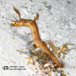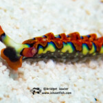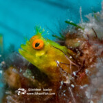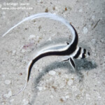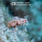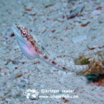 Below, a Pikeblenny who I believe is a Yellowface (Chaenopsis limbaughi). This is a very tiny species that lives in a hole in the sand. This one was fully out, which is quite unusual. An inch and a half long, she is about as big around as your phone charging cord.