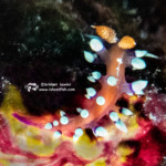 Below, a nudibranch called a Samla riwo, a weird name for a cool-looking nudi. This one was around 1″ long: