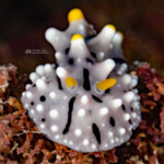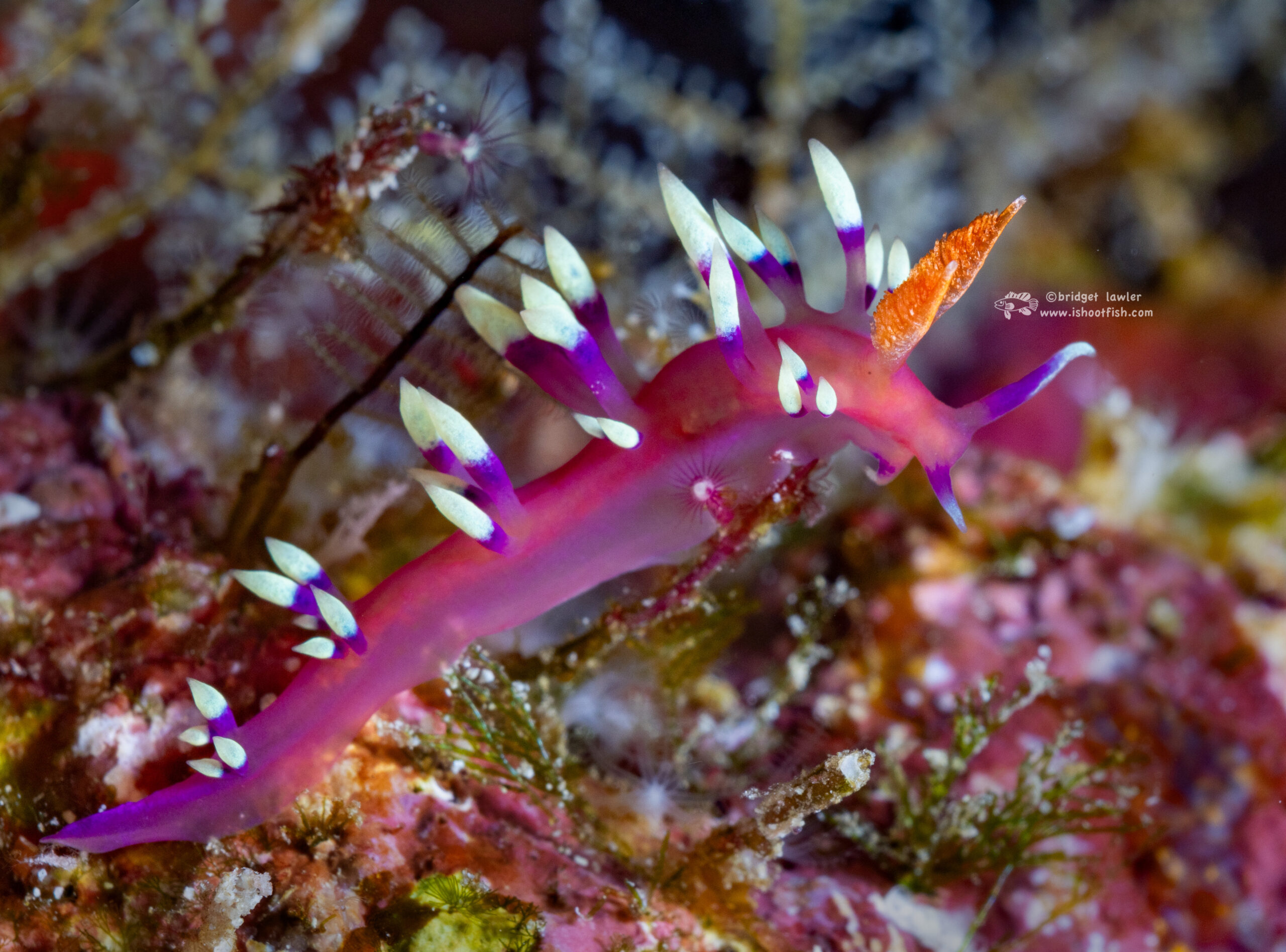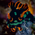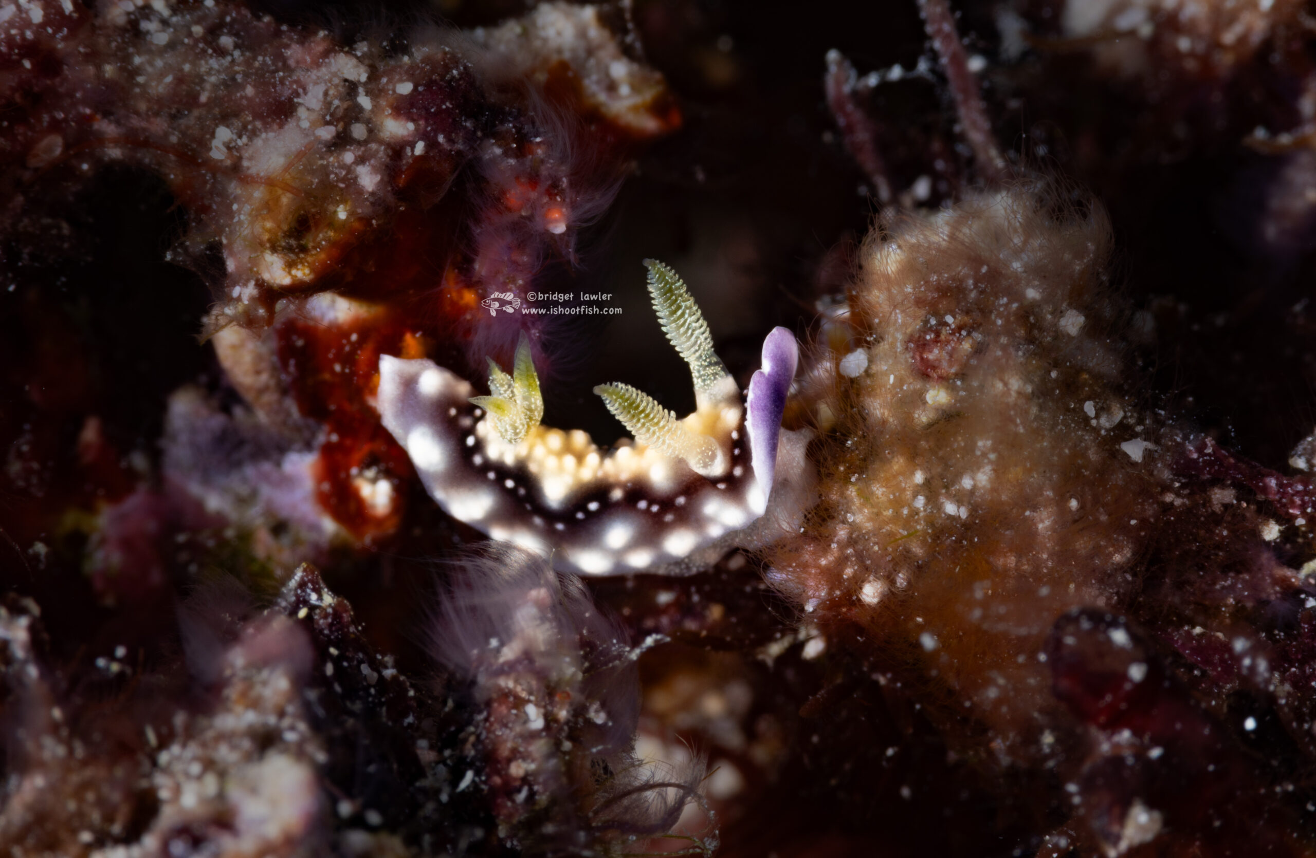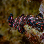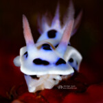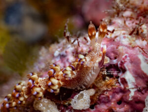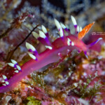 My favorite find was this rare nudibranch, the Samla riwo, about 1/2″ long, which I found on a wreck: