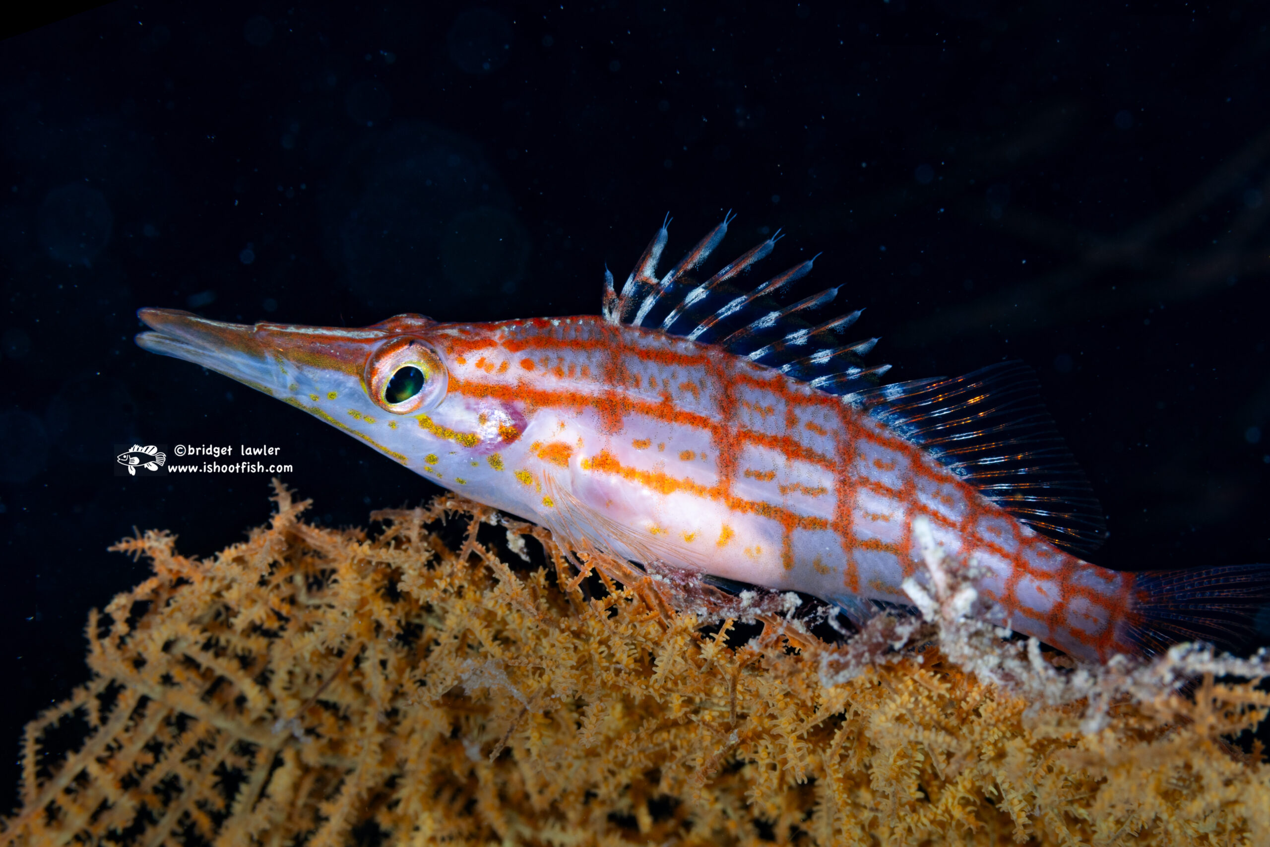 ^ A gorgeous network pipefish (Corythoichthys flavofasciatus) on the hunt